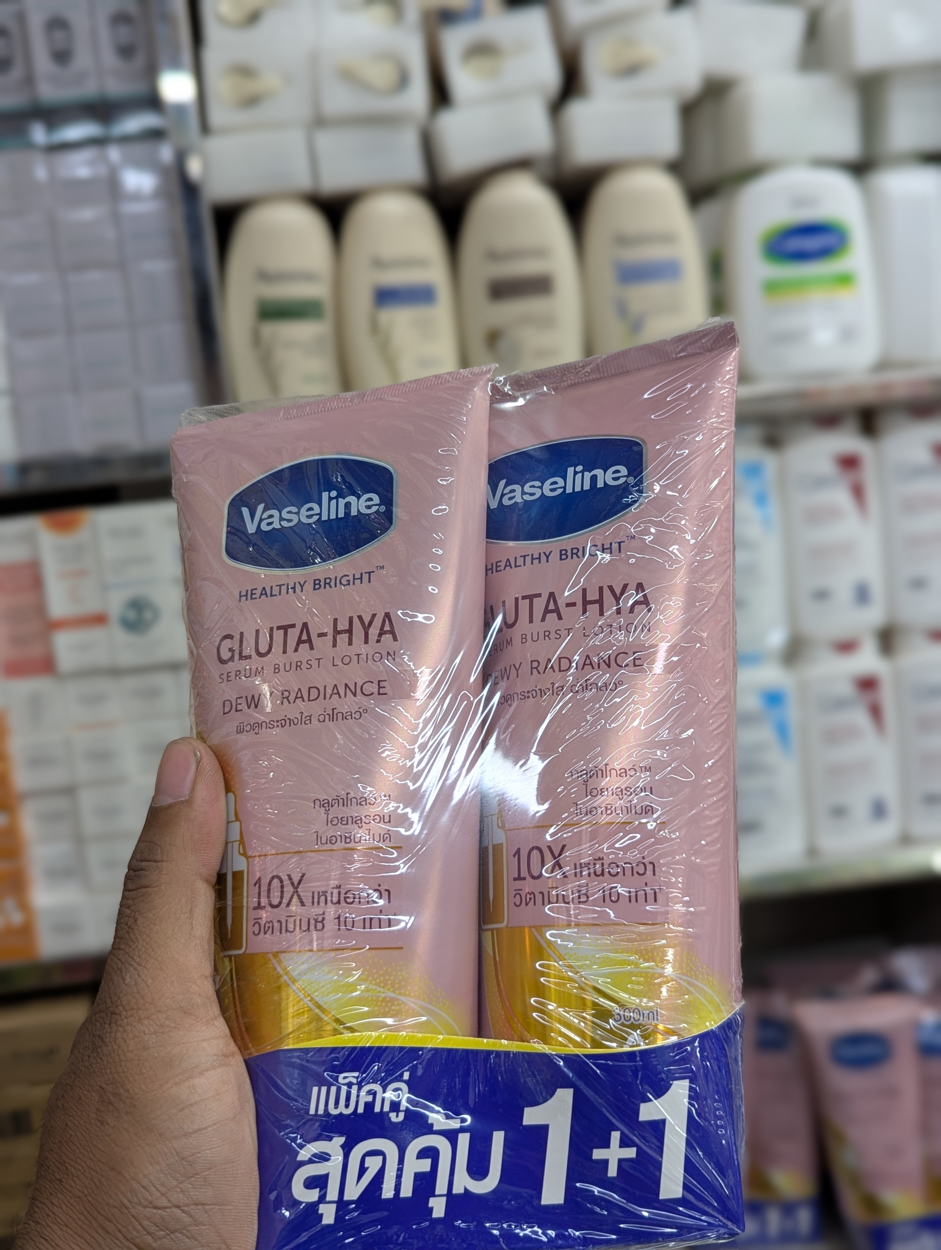 The Vaseline Gluta Hya Serum Burst Lotion Dewy Radiance (290ml) is your go-to daily body care essential for bright, glowing, and hydrated skin. With its serum-light texture and powerful active ingredients, it delivers long-lasting moisture and radiance you can see and feel.